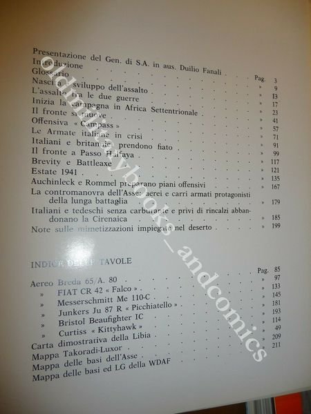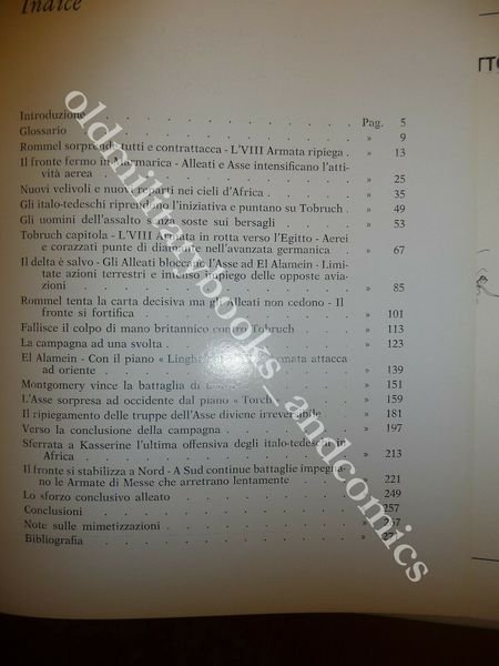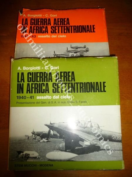 TITOLO: LA GUERRA AEREA IN AFRICA SETTENTRIONALE ASSALTO DAL CIELO 1940-41 1942-1943 DESCRIZIONE: Stem Mucchi Modena 1973 I^ Ed., br. ed. in plastica con sovracc. ill. col. con alette, pp. 205+273 con 70 ill. b/n f.t. in 8°. I volumi sono molto ben illustrati, moltissime foto e disegni anche a colori, completi delle tavole finali. La piu' completa opera sulla guerra aerea nell'Africa Settentrionale. CONDIZIONI: Ottime piccoli strappetti alle sovracc. interni perfetti. PESO / WEIGHT: 2200 gr. without package