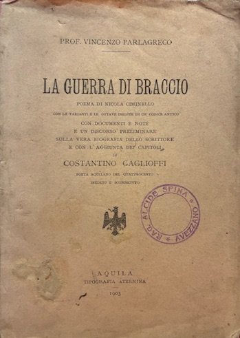 La Guerra di Braccio. Poema di Nicola Ciminello con le varianti e le ottave inedite di un codice antico. Con documenti e note e un discorso preliminare sulla vera biografia dello scrittore e con l’aggiunta dei capitoli di Costantino Gaglioffi poeta aquilano del Quattrocento inedito e sconosciuto