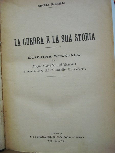 LA GUERRA E LA SUA STORIA. EDIZIONE SPECIALE con profilo biografico del Marselli e note a cura del Colonnello E. Boccaccia.
