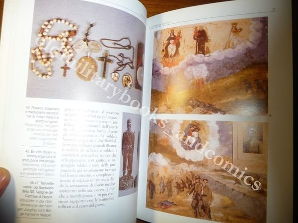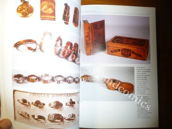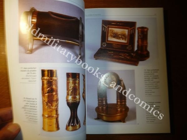 DESCRIZIONE: Gaspari Udine 1999 I^ Ed., pp. 95, br. ed. ill., num. ill. b/n e col. n.t. carta pat. in 8°. Un’ inedita esposizione di oggetti prodotti dalla propaganda di guerra per finanziare il conflitto, a cui si aggiungono manufatti costruiti con residuati e parti di proiettili dagli stessi militari, considerati dei veri e propri “ricordi di guerra” da portare a casa o al contrario regalare o vendere ai compagni e ai civili. La prima grande guerra del Novecento, combattuta su tutti i fronti dal 1914 al 1918 da oltre 70 milioni di soldati, costata circa 10 milioni di morti e immani sofferenze a militari e civili, entra nelle case e nei salotti sotto forma di cartoline, soprammobili e oggetti di uso comune con i simboli e gli emblemi del conflitto, prodotti e diffusi da una propaganda di guerra che coinvolge la vita quotidiana e l’immaginario di popolazioni e combattenti. La guerra entra dunque nelle case e nei salotti sotto forma di cartoline, immagini, soprammobili, stoviglie e oggetti di uso quotidiano marcatamente caratterizzati dal conflitto in corso, coinvolge l’immaginario dei civili influenzandone la percezione del conflitto, mentre al fronte sono i militari stessi che, utilizzando residuati e pezzi di proiettili, producono, scambiano e ricercano una variegata gamma di “ricordi di guerra” dalle forme più strane e bizzarre: vasi, cornici, anelli, braccialetti, tagliacarte, oggetti da fumo, giocattoli, ecc. Di tutto questo rende conto la ricca ed indubbiamente inedita collezione Hellmann, nel suo genere la più completa in Europa, assemblata con competenza in anni di paziente ricerca, che evidenzia un articolato e complesso immaginario di guerra, parte integrante della nostra storia e della nostra memoria. CONDIZIONI: Ottime/Perfette. PESO / WEIGHT: 317 gr. without package
