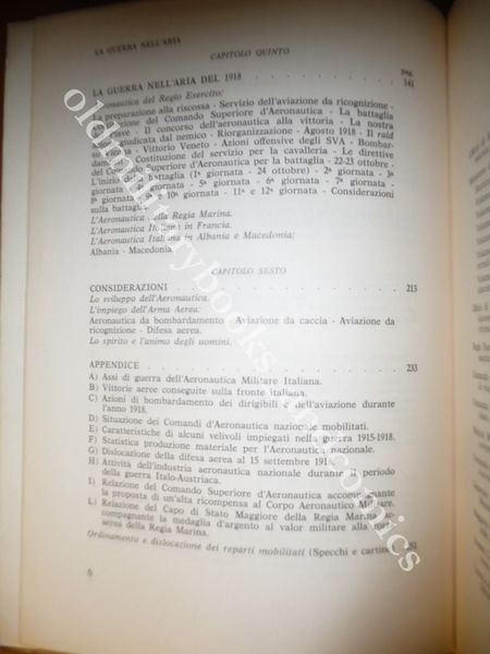 DESCRIZIONE: Edizioni Mate Milano 1966 pp. 250 br. ed. ill., 12 all. fine vol. più volte rip. con cartine e schemi in 8°. Documentata storia della guerra nel I° conflitto mondiale sul fronte italiano, corredata da cartine e schemi riassuntivi che presentano la situazione delle forze aeree italiane all'inizio, durante e alla fine della guerra, teatri operativi, dislocazione delle forze aeree, aeroporti, ecc. CONDIZIONI DELL'OGGETTO: Ottime/Perfette. PESO/WEIGHT: 450 gr. without package