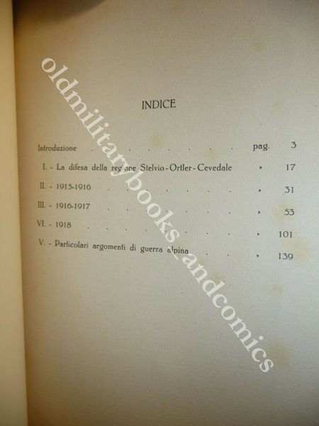 DESCRIZIONE: Edizioni F. Casanova & C. Torino 1929 br. ed. con applicata al piatto una foto pp. 172 con 55 illustrazioni in fototipia b/n f.t. in 8°. «Le scalate prodigiose al cospetto del nemico, gli assalti su per rocce scoscese e ghiacciai, la morsa del freddo, la fame e il sonno, la paura per le scariche dei fulmini e l'insidia delle valanghe: una ricostruzione rigorosa e appassionante.» Dallo Stelvio all'Ortler, dal Cevedale al San Matteo, dalla viva voce dei protagonisti vengono descritte le operazioni svoltesi nella regione dell'Ortler, il fronte più elevato e più difficile dove si sia mai combattuto. Gli alpini che vi hanno partecipato, scalando montagne impervie e ghiacciai desolati e sfidando ogni giorno la morte, raccontano la vita in trincea di fronte a un nemico implacabile, sotto l'incessante tormento del fuoco avversario e in condizioni fisiche, ambientali e meteorologiche fino ad allora ritenute impossibili e inavvicinabili per l'uomo. CONDIZIONI: Buone, danni alla cop. foto stropicciata, firma d'appartenenza abrasa e macchie MANCA CARTA FINALE. PESO / WEIGHT: 649 gr. without package