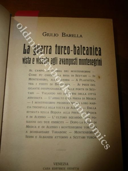 TITOLO: LA GUERRA TURCO-BALCANICA VISTA E VISSUTA AGLI AVAMPOSTI MONTENEGRINI - QUESTIONI DI POLITICA ESTERA LA GUERRA BALCANICA - AL MONTENEGRO DESCRIZIONE: 3 Volumi rilegati insieme con legatura d'epoca in mz. pelle tit. al dorso. CONDIZIONI: Ottime. PESO / WEIGHT: 1000 gr. without package