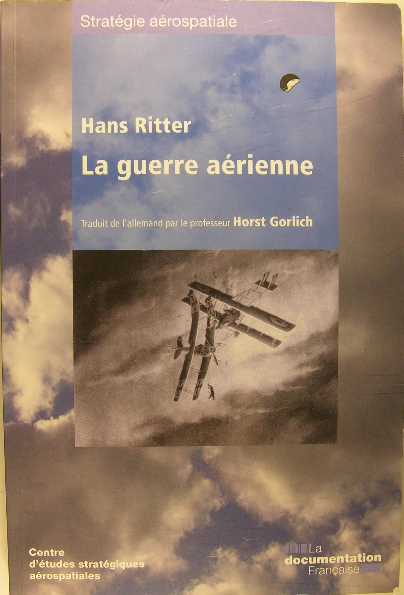Centre d'étude stratégiques aérospatiales, La documentation Française, 2013, in/8 broché, 279 pages. Photographies en noir et blanc. Traduit de l'allemand par le professeur Horst Gorlich. "Guerre aérienne est la traduction du livre de référence allemand, Der Luftkrieg, dont l’auteur, Hans Ritter, fut le père de la stratégie de la Luftwaffe. L’ouvrage, édité en 1926 mais qui ne disposait jusqu’alors d’aucune traduction en français, propose une analyse des opérations aériennes pendant la première guerre mondiale. Une préface et deux postfaces permettent de souligner l’apport de l’ouvrage à la compréhension des mécanismes de gestation de la doctrine aérienne de l’Entre-deux-guerres."