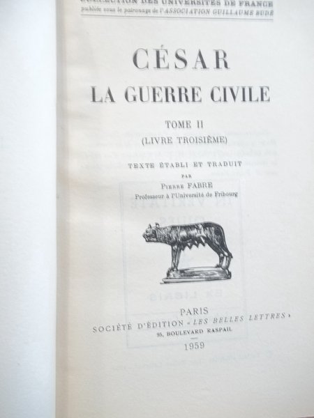 PARIS SOCIETE' D'EDITION LES BELLES LETTRES 1959 - COLLECTION DES UNIVERSITES DE FRANCE - BROSSURA 20 X 14 BUONE CONDIZIONI, - TIMBRO EX LIBRIS - SEGNI DEL TEMPO.