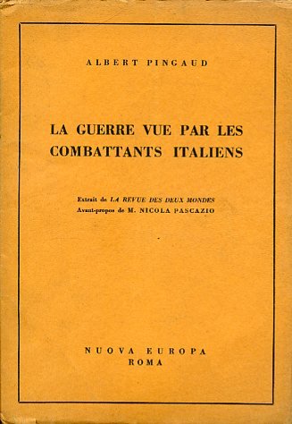 La Guerre vue par les combattants italiens. Extrait de La Revue des Deux Mondes. Avant - propos de M. Nicola Pascazio