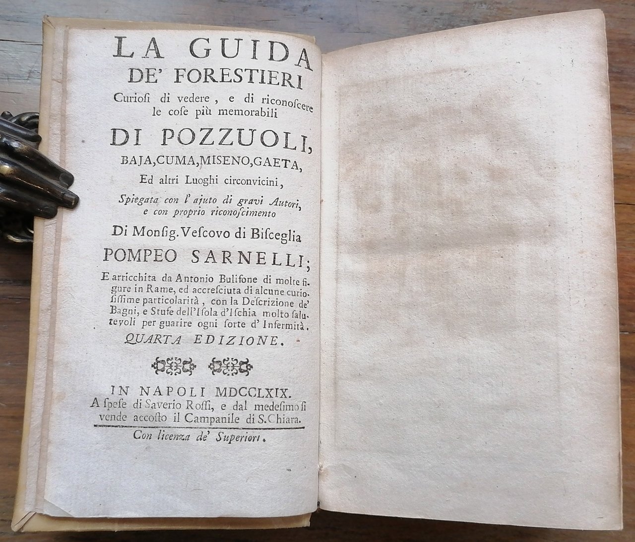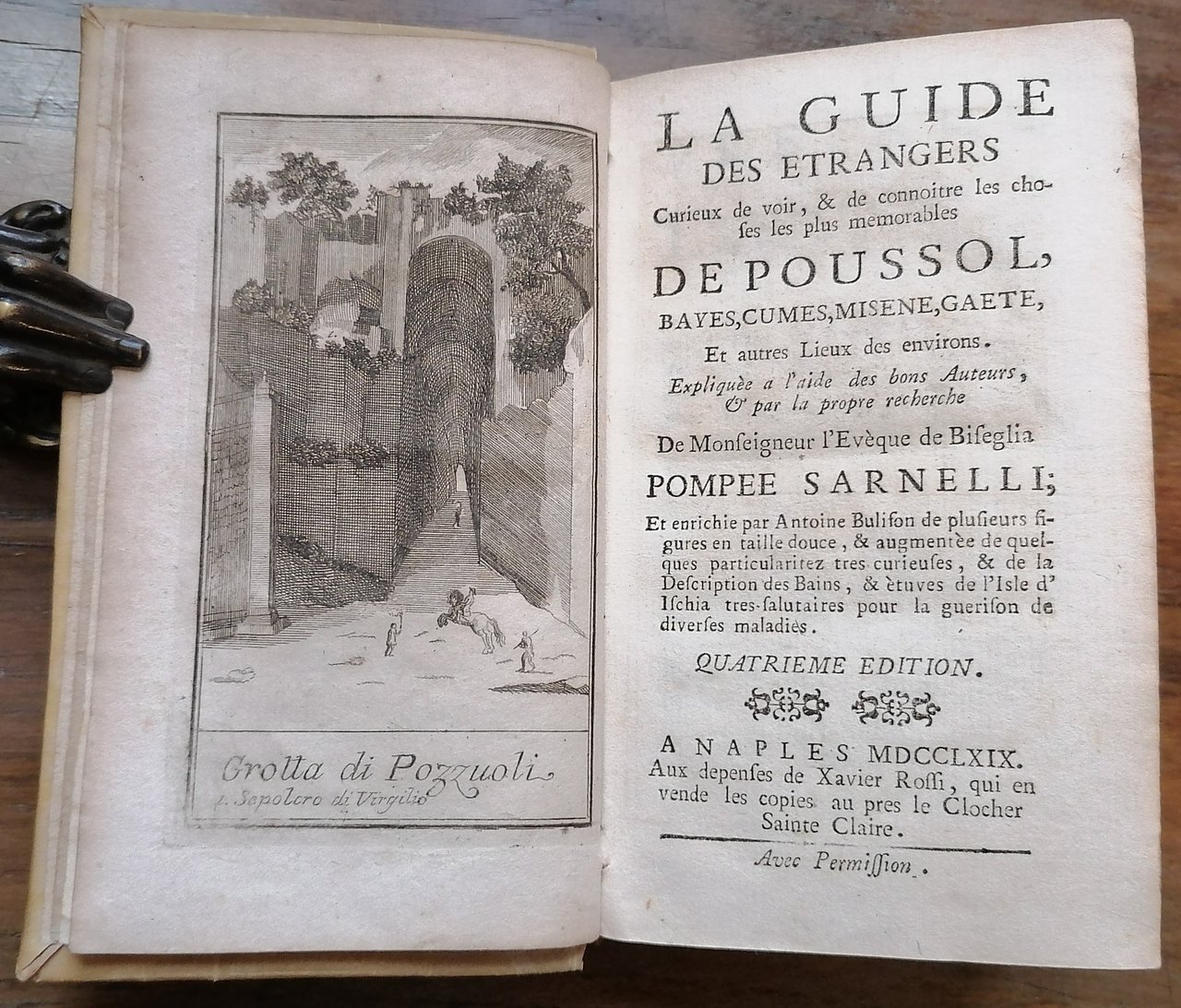 La Guida de' Forestieri curiosi di vedere, e di riconoscere le cose più memorabili di Pozzuoli, Baja, Cuma, Miseno, Gaeta, ed altri Luoghi circonvicini, spiegata con l'ajuto di gravi Autori e con proprio riconoscimento di Mons. Vescovo di Bisceglia Pompeo Sarnelli; e arricchita da Antonio Bulifone di molte figure in rame, ed accresciuta di alcune curiosissime particolarità, con la Descrizione de' Bagni, e Stufe dell'Isola d'Ischia molto salutevoli per guarire ogni sorte d'Infermità. Quarta edizione.
