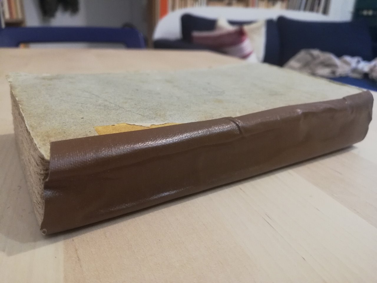 Copertina con dorso mancante e rimpiazzaato da adesivo marrone. tagli scuri, Fioriture e macchie nelle pagine, principio di distacco della parte anteriore copertina rigida, come da foto. Legatura ancora buona