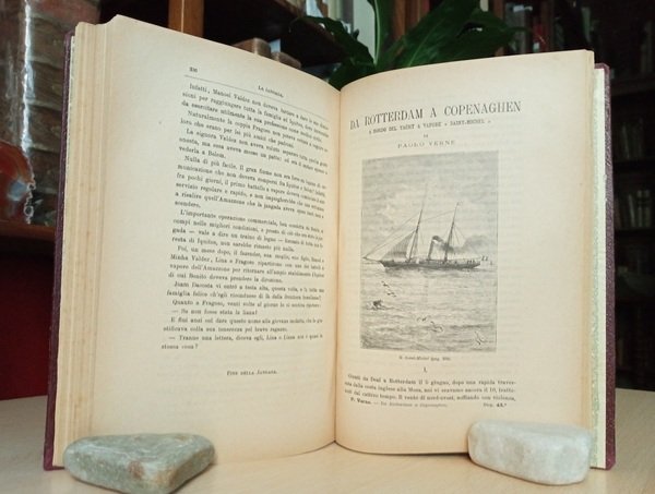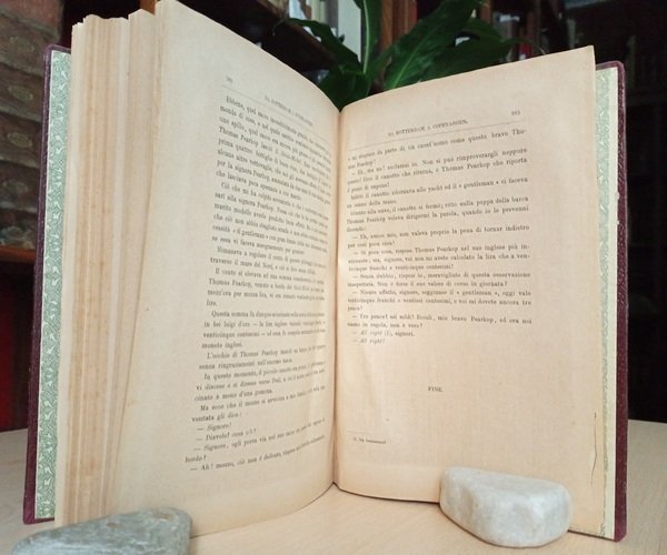 Volume in 4, legatura coeva in mezza tela muta, sguardie decorate, occhiello, frontespizio con vignetta incisa, (4) 383 pp. in numerazione continua per i due romanzi, carta d'indice, 96 belle illustrazioni n.t. ed 1 carta. Poco comune prima traduzione italiana, uscita a dispense nel formato in 4, arricchita di molte suggestive illustrazioni. In ottimo stato.