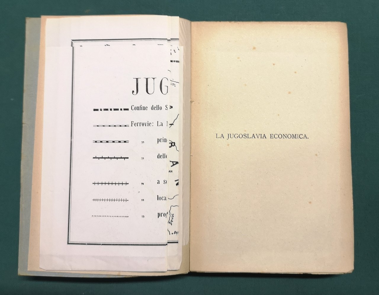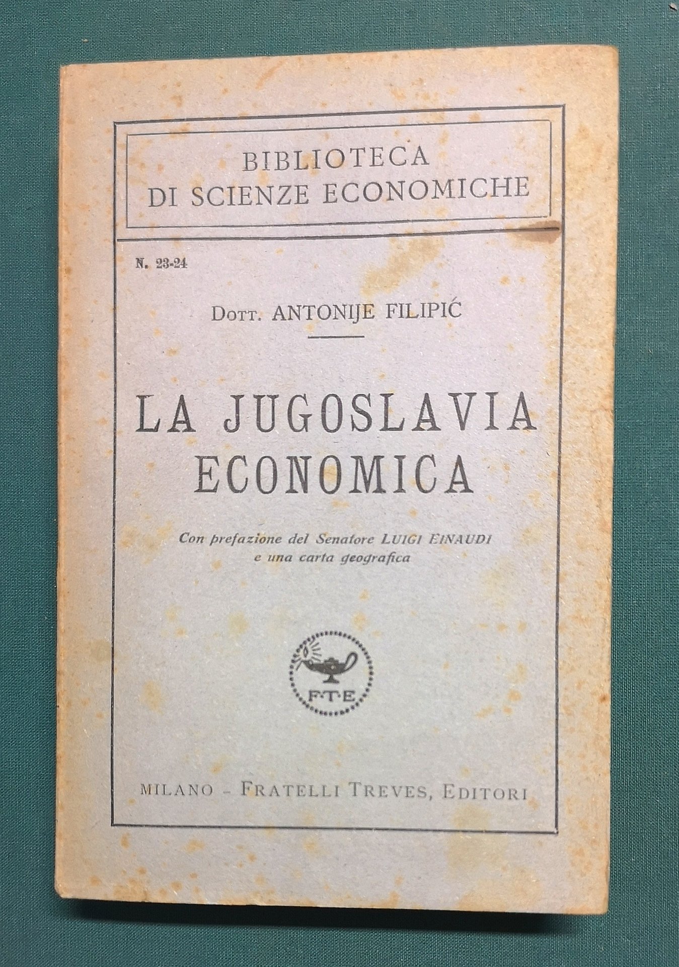 >in-8, pp. X, 297, con 1 carta geografica su velina, più volte ripiegata, 1 tavola fuori testo, ripiegata, con dati sul commercio d'esportazione. Broch. edit. Edizione originale, rara. "Per noi italiani il libro è soprattutto degno di essere letto per le informazioni abbondanti ed attinte a fonti di prima mano sulla produzione agricola, industriale e mineraria, sui commerci e sulle vie di comunicazioni del vicino Stato. Egli crede che Italia e Jugoslavia siano due Stati economicamente conglomentari, più che concorrenti." scrive Einaudi nella bella prefazione. Buon esemplare, minime ingialliture alla coperta.