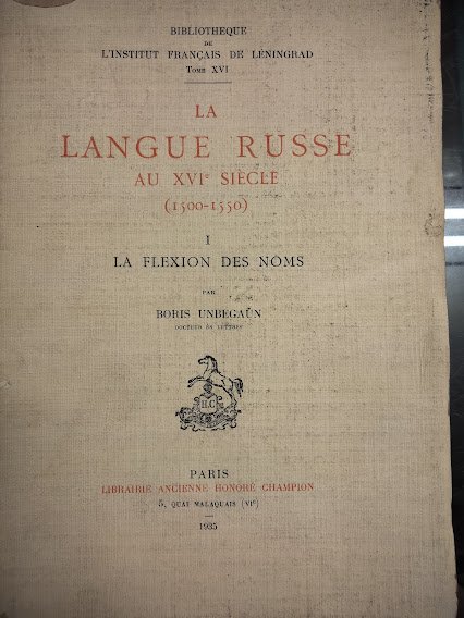 La langue Russe ai XVIe Siècle (1500-1550). Bibliotheque de l'Institut Français de Léningrad, tome XVI. I la Flexion des noms.