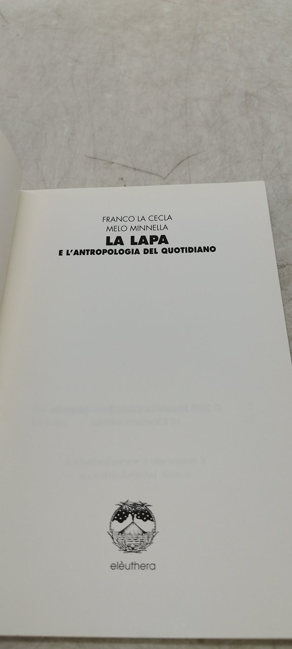 franco la cecla melo minnella la lapa e l'antropologia del quotidiano. , eleuthra 2005 italiano, 61 °°