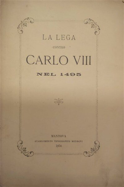 in-8, pp. 14, bross. edit. Le vicende dell'ingresso del Re di Francia in Italia e la figura del Marchese di Mantova Francesco II Gonzaga. Pubblicazione per nozze Dal Vecchio - Norsa. Ciaramelli, Nuptialia, 461. Ottimo esempl. [276]