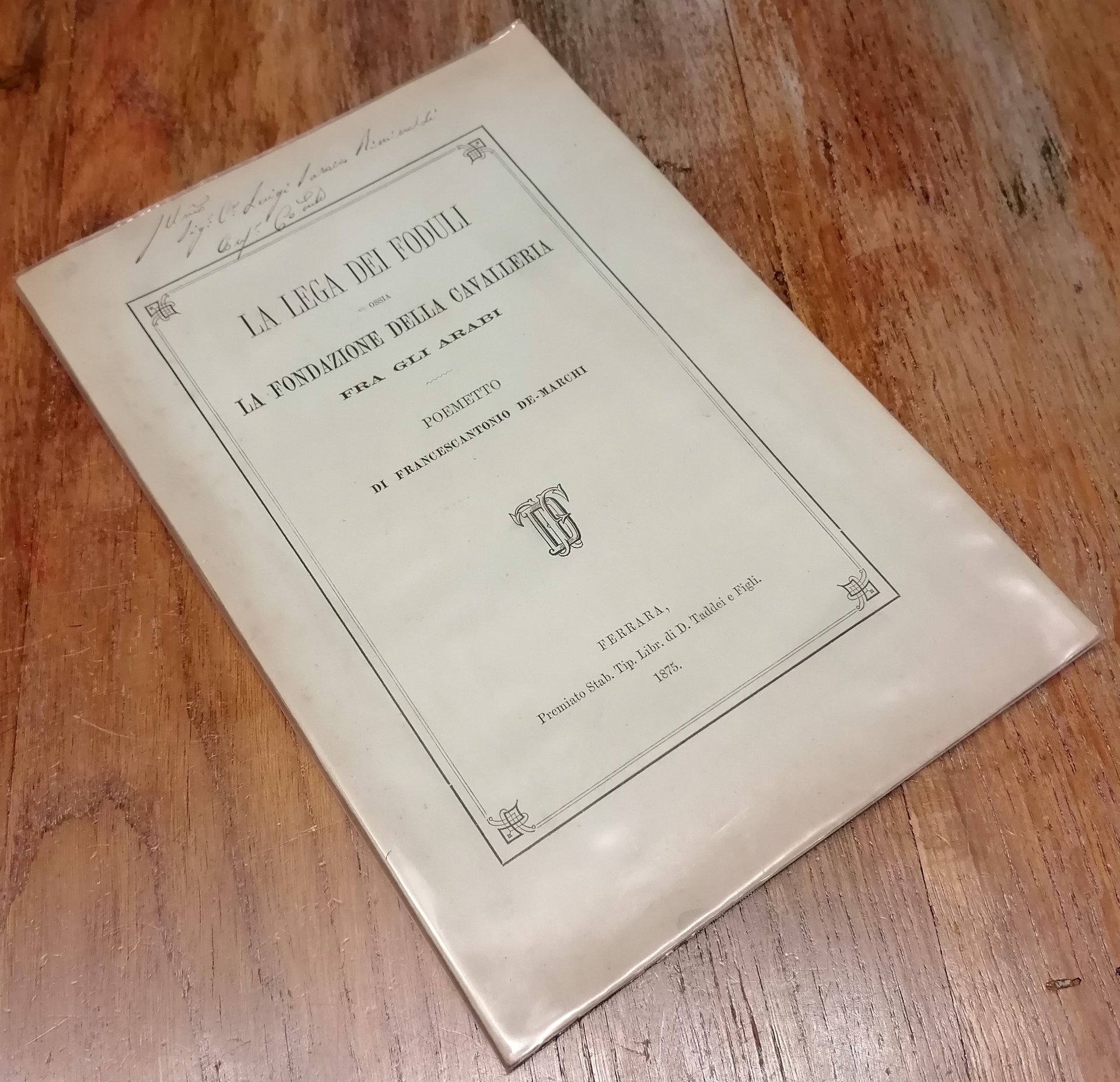 La Lega dei Foduli ossia la fondazione della cavalleria fra gli Arabi. Poemetto.