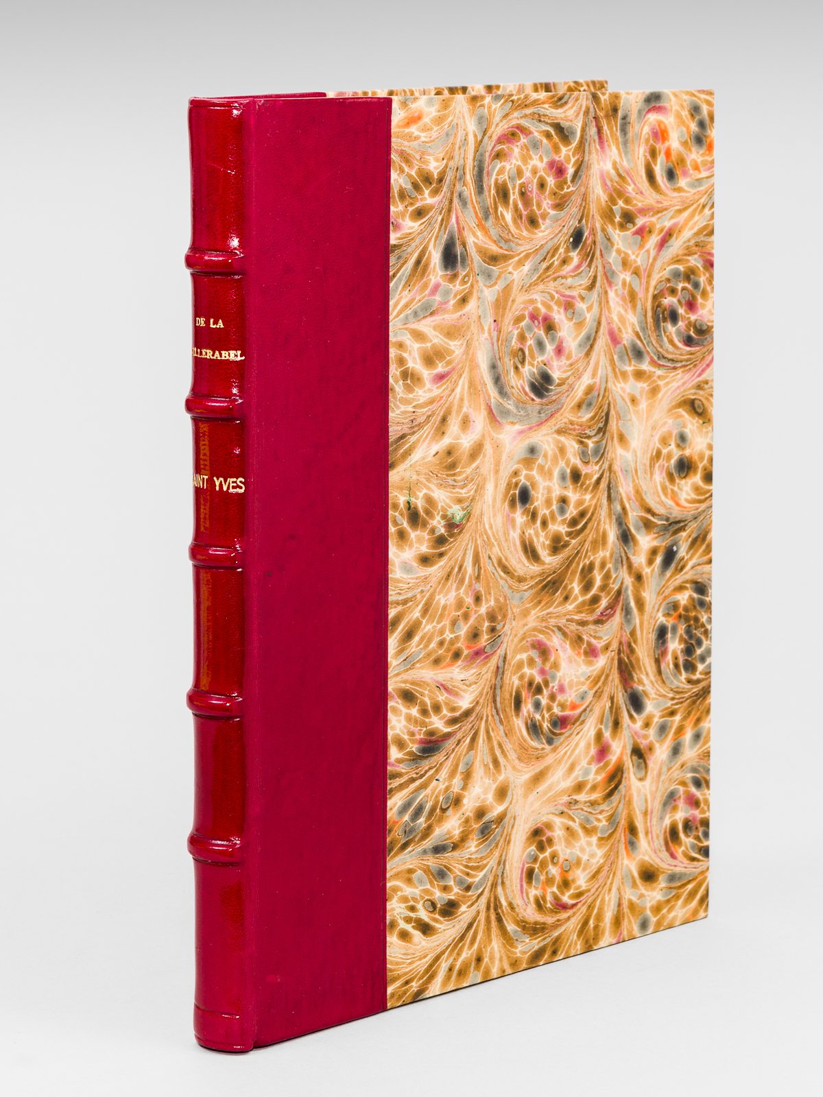 Imité des Legendaires Bretons d'après des documents historiques rares ou inédits par le Vicomte Arthur du Bois de la Villerabel, illustrations de Paul Chardin, 1 vol. grand in-8 reliure postérieure demi-basane rouge, dos à 5 nerfs, couvertures conservées, Hyacinthe Caillière, Rennes, 1889, 160 pp. Bel exemplaire très bien relié de cette "légende de Saint Yves", le grand saint breton, patron des avocats. Bel exemplaire (ex-libris en garde).