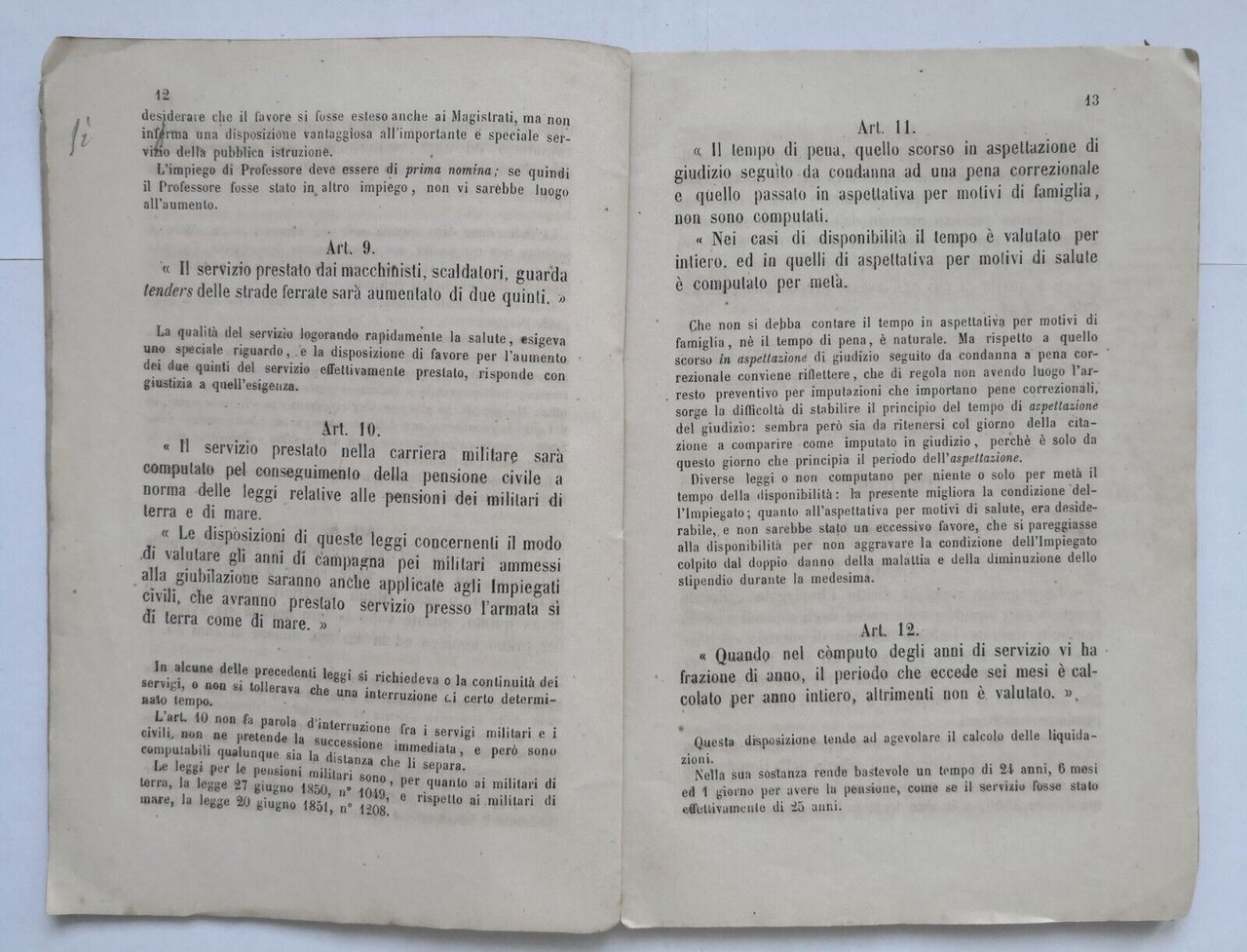 LA LEGGE DELLE PENSIONI PER GLI IMPIEGATI CIVILI DEL REGNO D'ITALIA 1864 libro