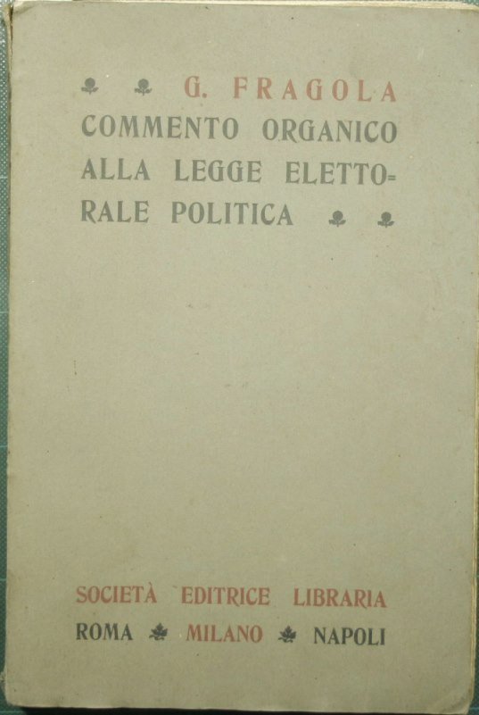 30 giugno 1912, nn. 665 e 666 (testo unico) coordinata alla nuova legislazione elettorale amministrativa e commerciale - Commento organico con larghi richiami dei precedenti parlamentari, dottrina, giurisprudenza, circolari ministeriali, ecc. - in 8° - pp.275 - Brossura editoriale - Alcuni fascicoli allentati