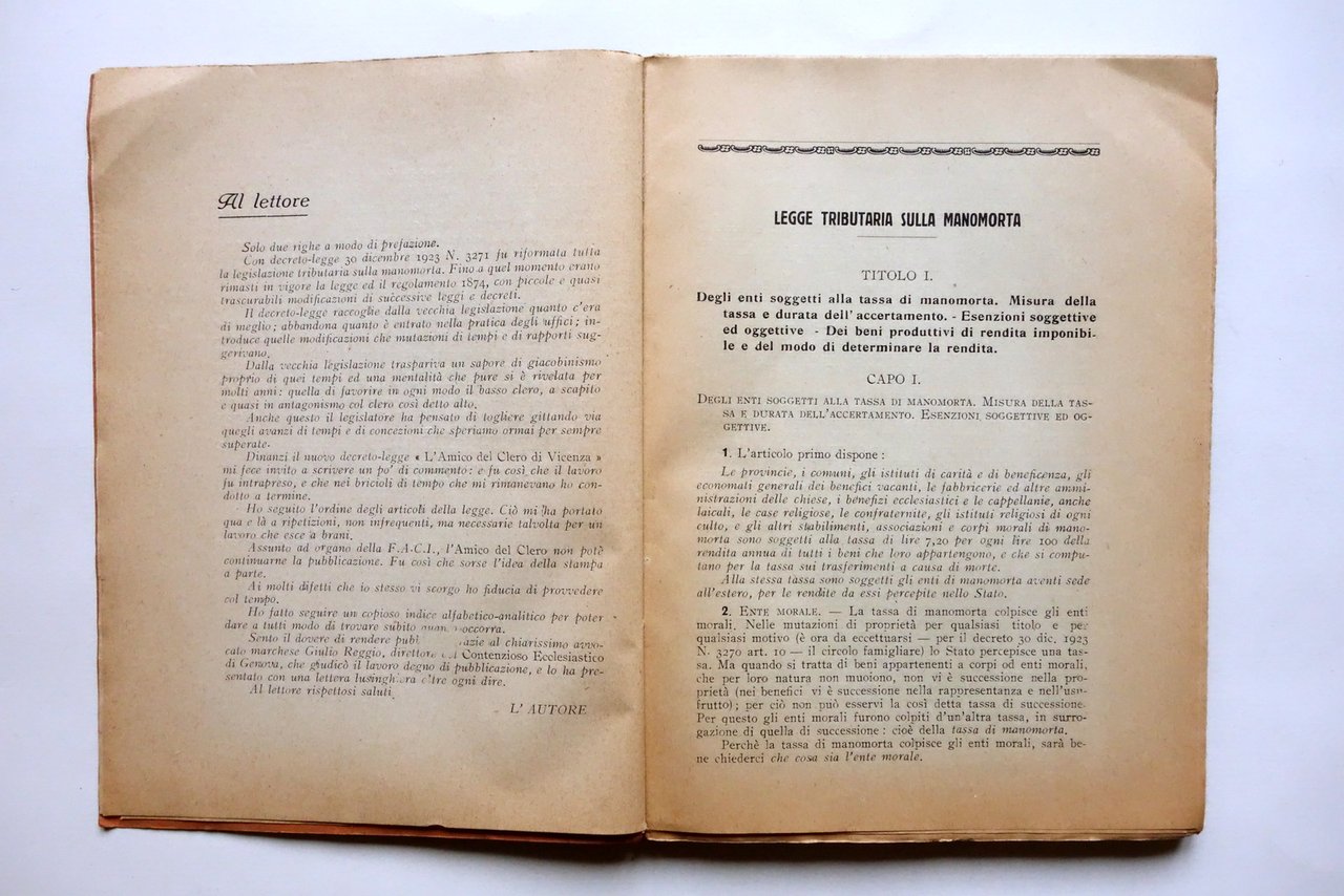 La Legge Tributaria sulla Manomorta Lino Laghi Tip. Commerciale Vicenza 1925