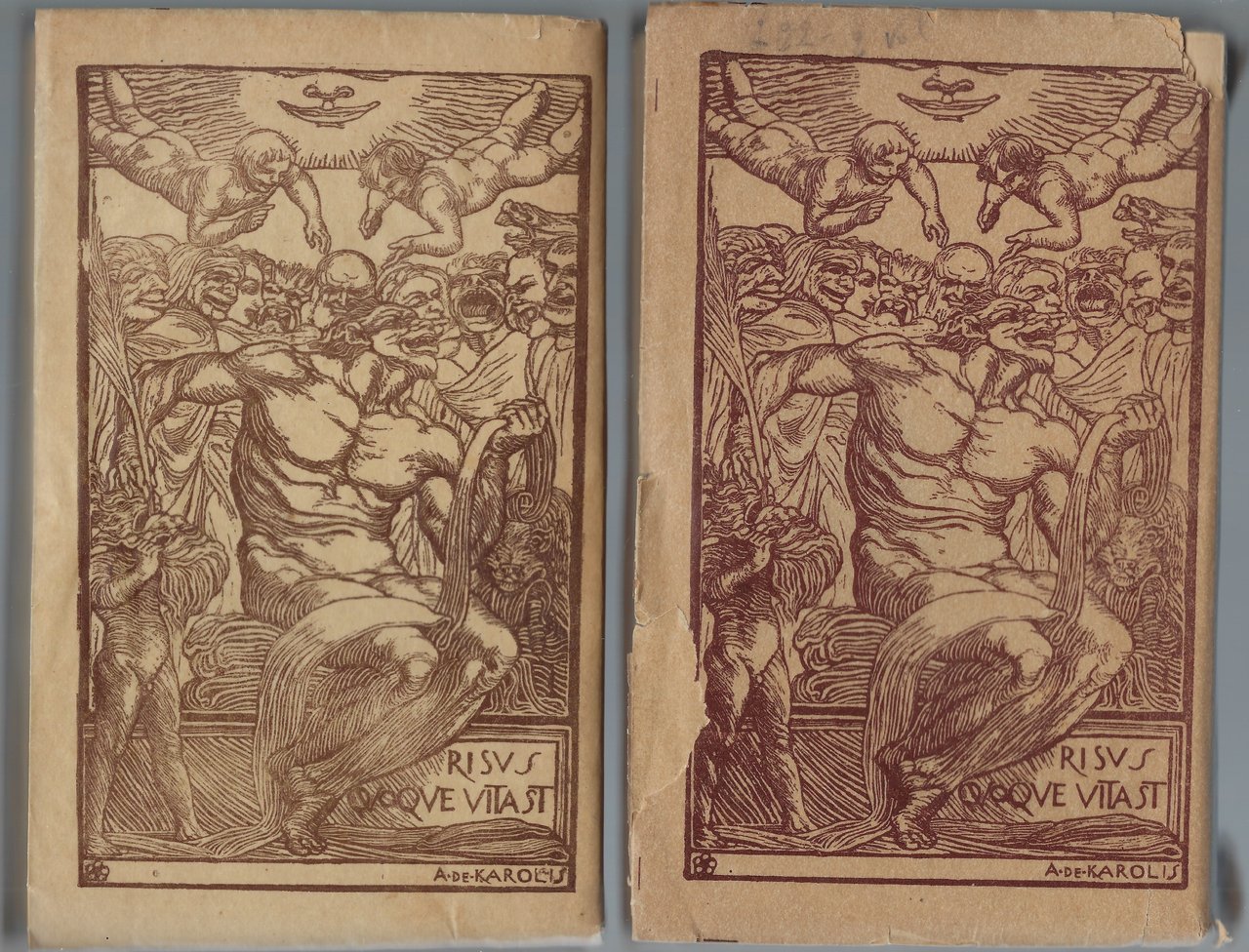 Presentano alcuni segni d'usura: il 2° volume risulta parzialmente lacerato al dorso mentre il 1° volume risulta parzialmente distaccato dalla coperta.