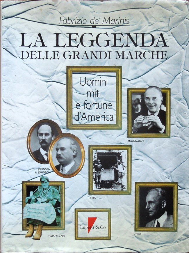 In-4° (31 x 23,2 cm), pp. (12), 149, (3), legatura editoriale con sovraccoperta illustrata a colori. Normali segni d'uso e del tempo alla sovraccoperta, in particolare, nel bordo superiore della piegatura tra la parte che copre il piatto anteriore e l'aletta anteriore, piccolo strappo, senza perdite, ben rimarginato mediante applicazione di carta giapponese nella parte interna. Con moltissime illustrazioni a colori e in bianco e nero, nel testo. Per il resto, molto ben conservato. Edizione speciale fuori commercio per Elizabeth Arden. Indice. Ringraziamenti. Premessa. Levi's. Marlboro. Dow Jones. Ford. McDonald's. Chris-Craft. Johnson & Johnson. Gillette. Harley-Davidson. Spalding. Timberland. Hamilton. Good-Year. Colt. Singer. Campbell. Kraft. Parker. Catalina. Coca-Cola. Kodak. Elizabeth Arden. Bausch & Lomb. Boeing. Procter & Gamble.