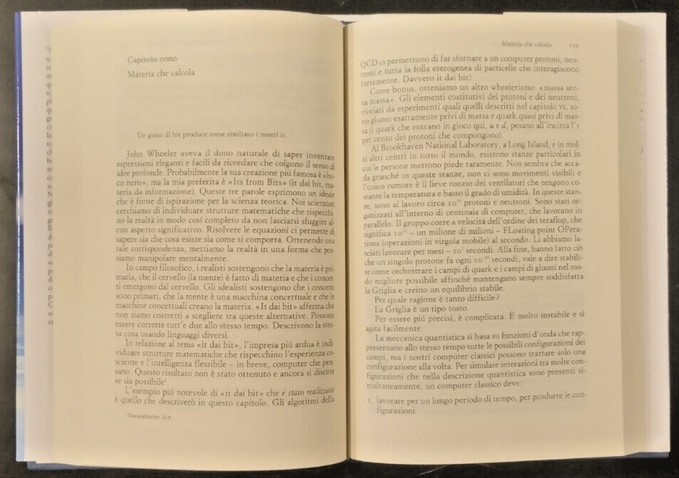 LA LEGGEREZZA DELL'ESSERE La massa, l'etere e l'unificazione delle forze di Franz Wilczek. Mondadori Editore, 2009. VI, 280 pagine, numerose illustrazioni in bianco e nero nel testo, a colori nel testo. Copertina editoriale in tutta tela con sovraccoperta. Stato di conservazione: QUASI NUOVOIl libro esplora le frontiere della fisica contemporanea attraverso una narrazione accessibile, nonostante la complessità degli argomenti. Wilczek, Premio Nobel per la fisica, analizza concetti come la massa, lo spazio vuoto e l’unificazione delle forze, presentando idee rivoluzionarie: la massa è definita come "energia contenuta nei componenti più elementari, in sé privi di massa", mentre lo spazio vuoto è descritto come un "mezzo complesso, brulicante di attività spontanea". L’autore utilizza metafore e ironia per spiegare teorie avanzate, come la cromodinamica quantistica, e sottolinea il ruolo della bellezza matematica nella costruzione di modelli scientifici. Pur mantenendo un tono divulgativo, il testo richiede un’attenzione critica, poiché alcune spiegazioni rischiano di risultare oscure per i non esperti. La struttura del libro riflette la ricerca di una teoria unitaria che includa anche la gravità, con riferimenti agli esperimenti dell’LHC del CERN. Nonostante le sfide interpretative, l’opera offre una visione stimolante del mondo fisico, combinando rigore scientifico e curiosità filosoficaLibro usato saggistica astrofisica matematica divulgativo