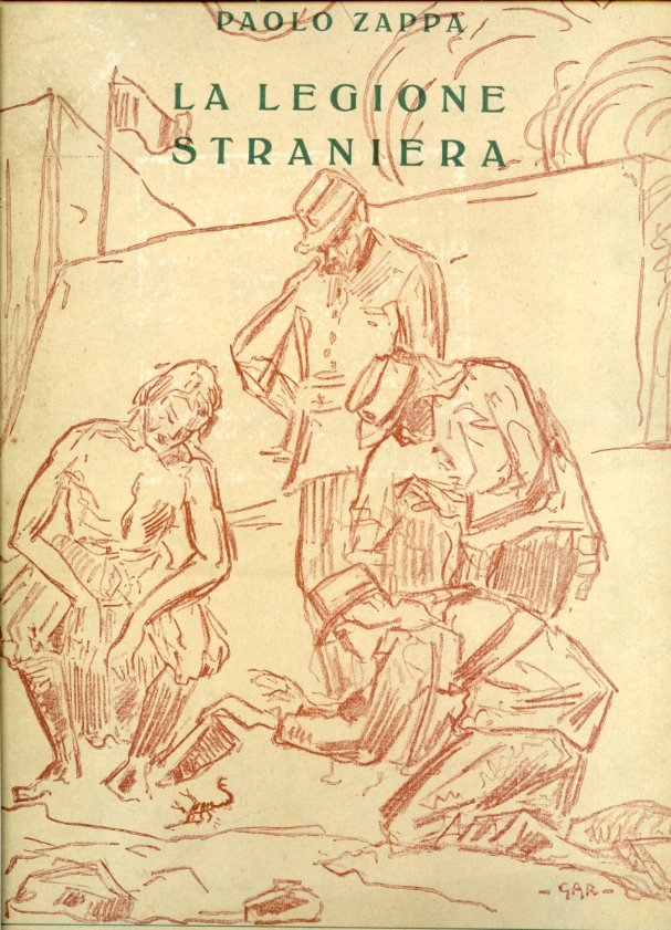 In-4°, pp. 128, brossura editoriale con sovraccoperta ripiegata con titolo entro filettature plurime. Con 16 tavole fuori testo in b.n. protette da velina, di cui una all'antiporta, e molte illustrazioni nel testo, egualmente in b.n., di Pier Antonio Gariazzo. Ottimo esemplare a fogli chiusi conservato entro custodia cartonata illustrata in rosso dallo stesso Gariazzo. Tiratura di 570 copie numerate (il nostro è il 152 delle 500 impresse su carta Ingres delle cartiere Miliani di Fabriano). Vennero impresse anche 54 copie su carte di lusso diverse numerate in cifre romane, riservate all'autore e ai suoi amici, e 16 copie su carte di lusso diverse con una serie delle tavole acquarellate dall'artista e un disegno originale, contaddistinte con lettere alfabetiche da A ad R. Romanzo autobiografico dello Zappa (Castagnole Monferrato, 1899-post 1950) edito per la prima volta nel 1932 e ispirato a un suo viaggio in Marocco del 1931 al seguito di una colonna della Legione Straniera diretta verso la regione di Meknes-Tafilalet per reprimere la resistenza degli ultimi indipendentisti marocchini. 'Come aiuto del vivandiere, mi fu possibile, alcuni anni or sono, seguire, per circa trecento chilometri lungo la strada del Sud, una colonna della Legione Straniera in marcia verso il Tafilalet'. Zappa seguì il tragitto del battaglione del 4° REI che marciava da Marrakech verso Uarzazat per poi proseguire nella vallata di Dadés. Il libro si situa nella grande fioritura di romanzi e film ('Beau Geste' tra tutti) che, negli anni '20 e '30, avevano offerto un ritratto romantico-esoticheggiante della Legione Straniera. Cfr., sul Gariazzo, Servolini, 367 e Bénezit,I V, 618.