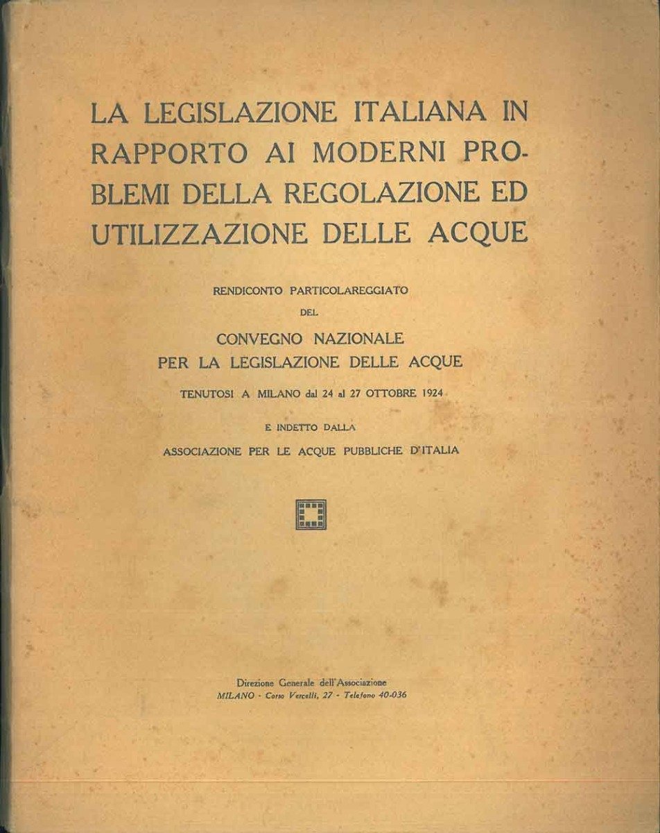 La legislazione italiana in rapporto ai moderni problemi della regolazione ed utilizzazione delle acque. Rendiconto particolareggiato del Convegno Nazionale per la legislazione delle acque tenutosi a Milano dal 24 al 27 ottobre 1924