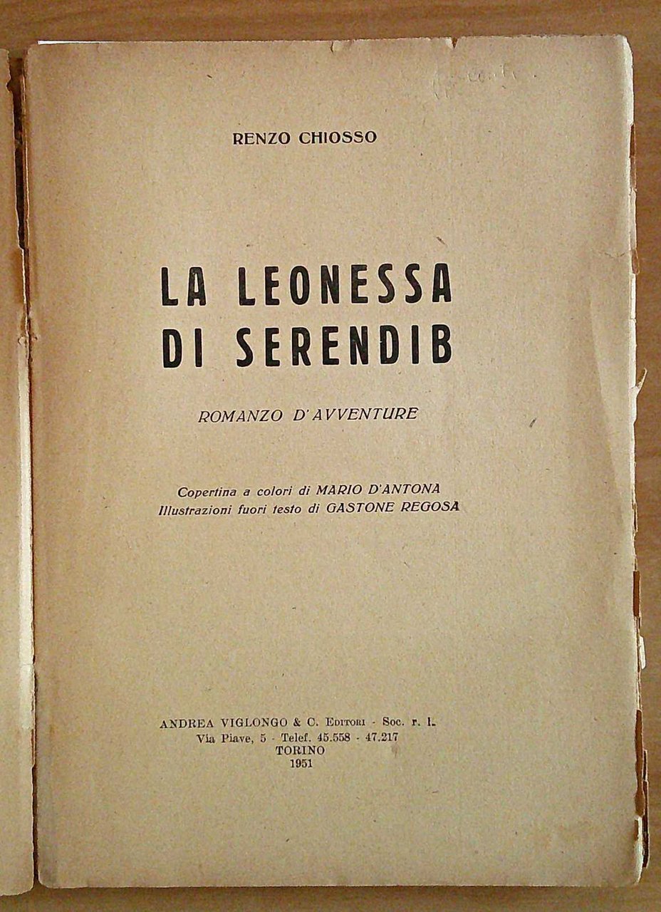 LA LEONESSA DI SERENDIB, 1951 - ill. D'ANTONA e REGOSA