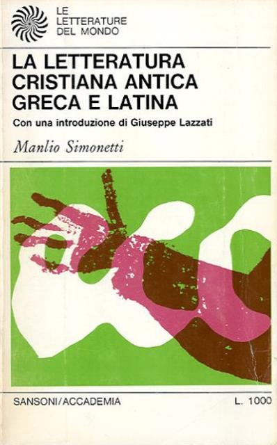 422 p. : 20 x 12 cm. Le letterature del mondo. Dalla letteratura subapostolica fino alle pagine che, vergate dalla mano di Agostino, sembrano riassumere con ineguagliabile forza esperienze di cinque secoli di vita, tutta la letteratura cristiana antica è concentrata in uno sforzo di penetrazione, di traduzione in termini pratici di vita, di difesa, di esaltazione, di rielaborazione sistematica del messaggio cristiano. Introduzione di Giuseppe Lazzati. Il volume fa parte di: «Le letterature del mondo», enciclopedia universale delle letterature diretta da Riccardo Bacchelli, Giovanni Macchia e Antonio Viscardi. Brossura editoriale, coperta in cartoncino flessibile plastificato opaco illustrato a colori. Nel front. firma ms. a penna di appartenenza, per il resto volume in buone condizioni. Codice libreria 2245.