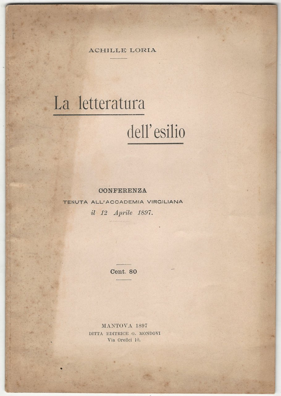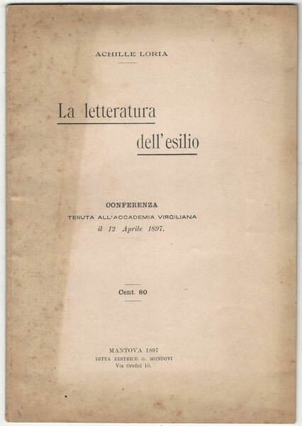 La letteratura dell'esilio. Conferenza tenuta all'Accademia Virgiliana.