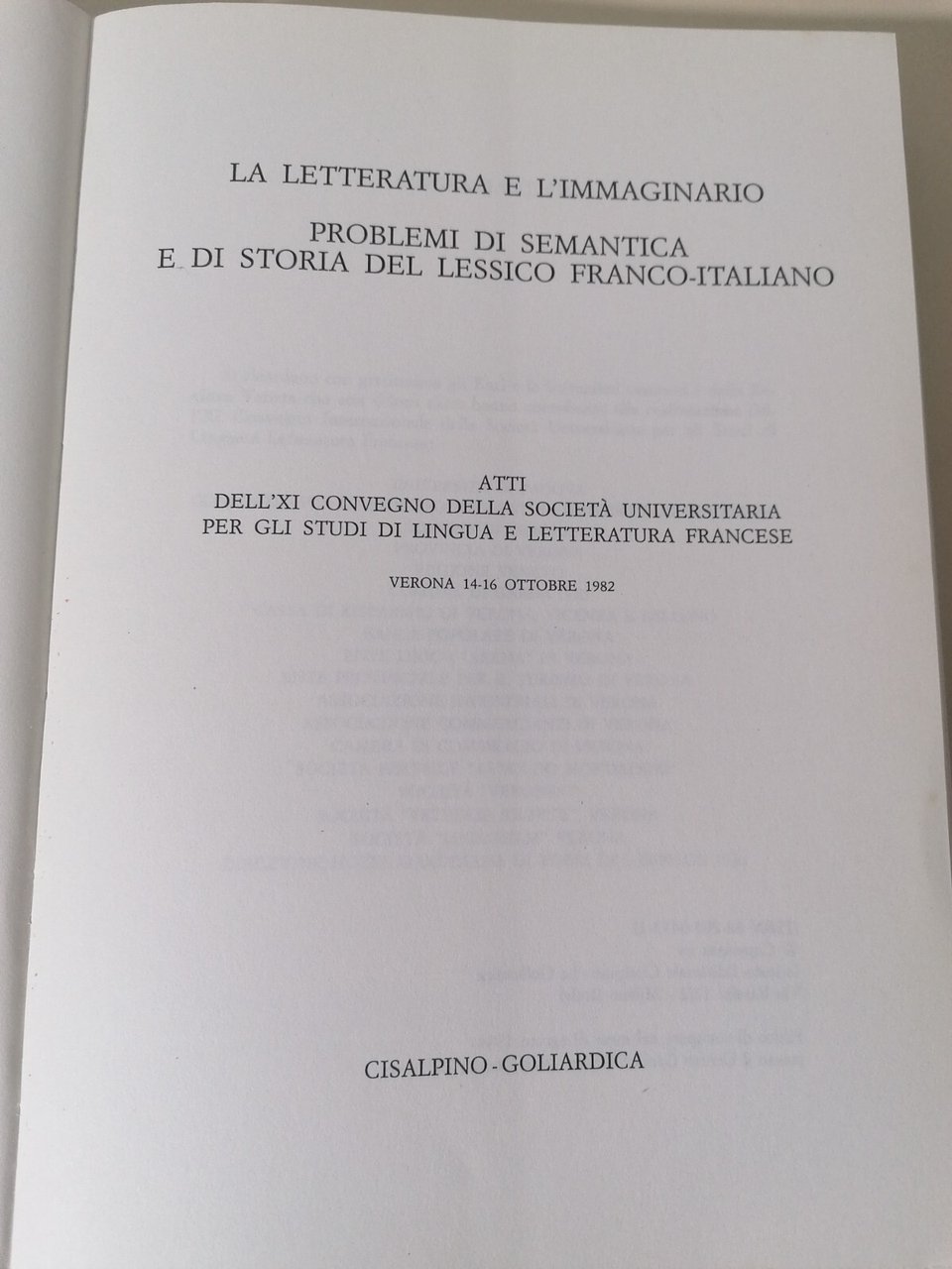 La Letteratura e l'immaginario. Problemi di semantica e storia del lessico franco-italiano