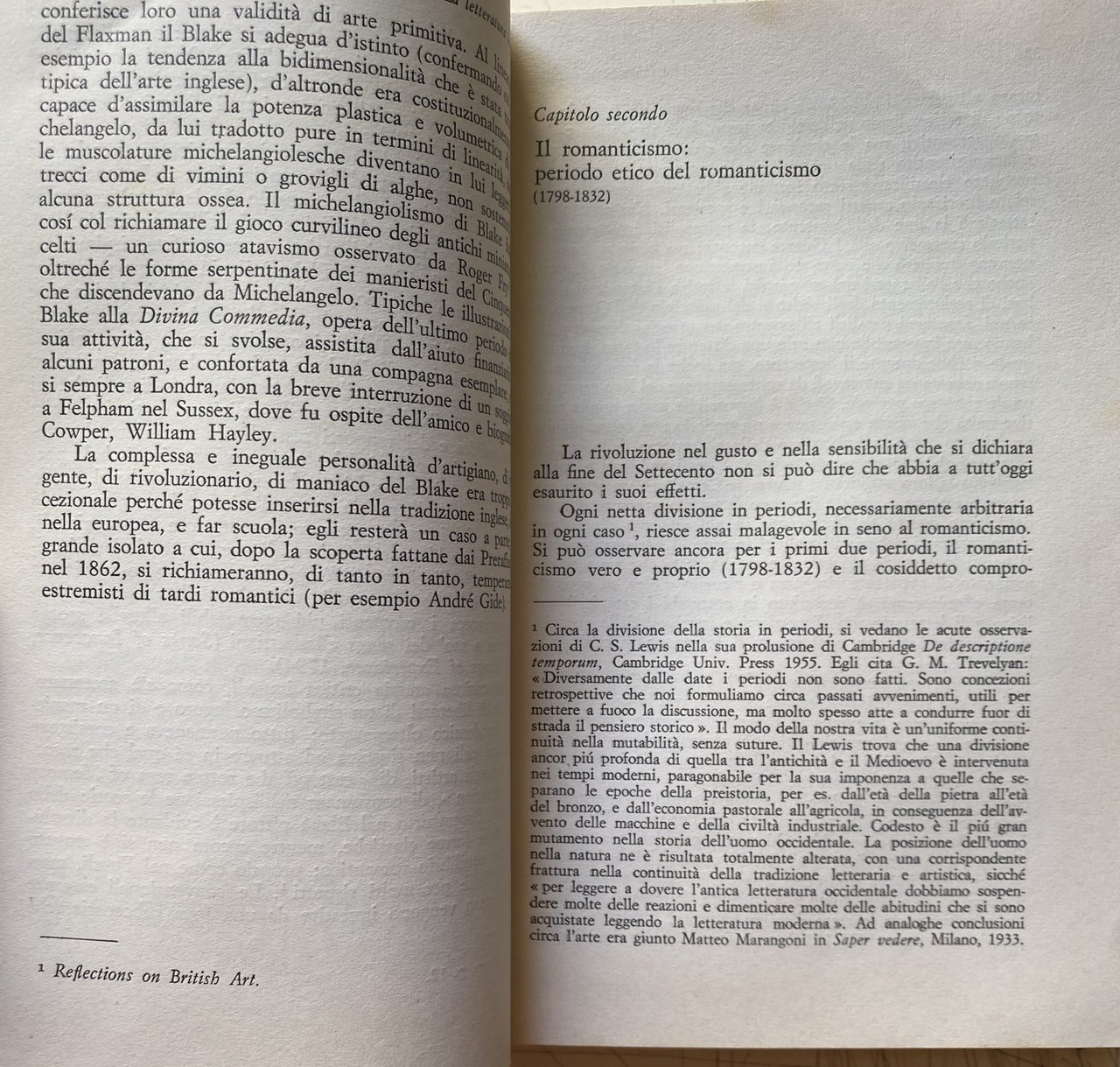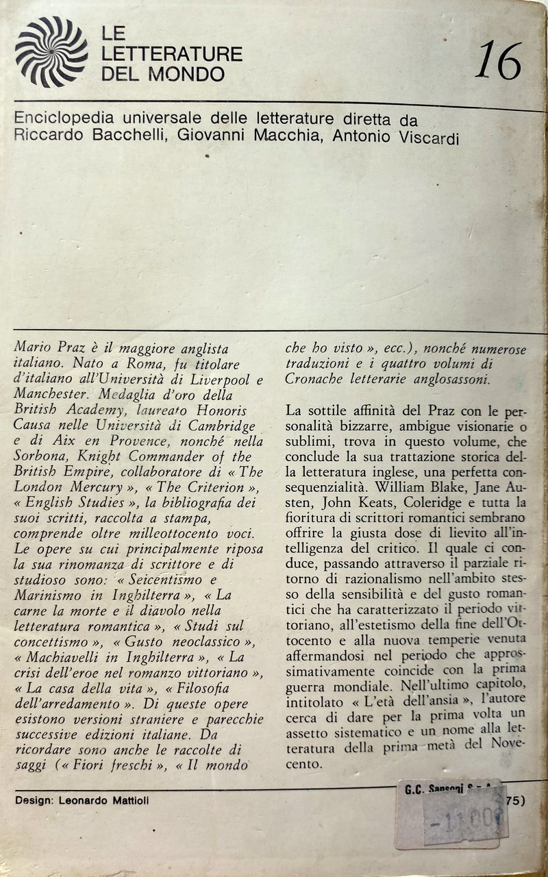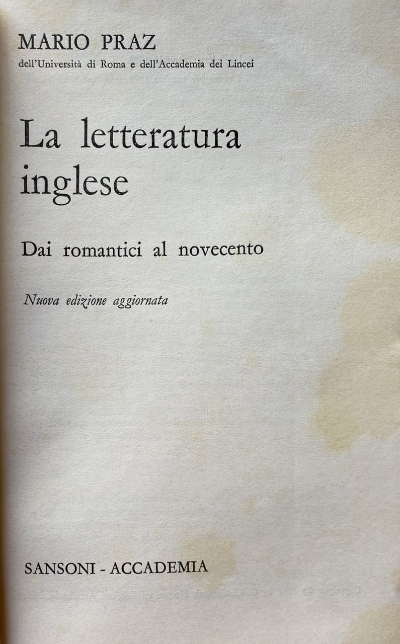 La sottile affinità del Praz con le personalità bizzarre, ambigue visionarie o sublimi, trova in questo volume, che conclude la sua trattazione storica della letteratura inglese, una perfetta consequenzialità. William Blake, Jane Austen, John Keats, Coleridge e tutta la fioritura di scrittori romantici sembrano offrire la giusta dose di lievito all'intelligenza del critico. Il quale ci conduce, passando attraverso il parziale ritorno di razionalismo nell'ambito stesso della sensibilità e del gusto romantici che ha caratterizzato il periodo vittoriano, all'estetismo della fine dell'Ottocento e alla nuova temperie venuta affermandosi nel periodo che approssimativamente coincide con la prima guerra mondiale. Nell'ultimo capitolo, intitolato L'età dell'ansia, l'autore cerca di dare per la prima volta un assetto sistematico e un nome alla letteratura della prima metà del Novecento.