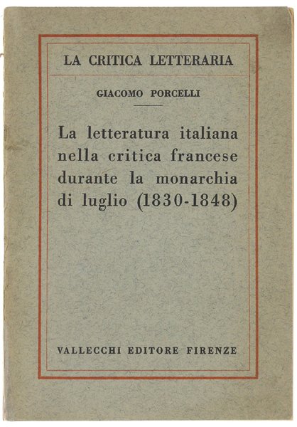 LA LETTERATURA ITALIANA NELLA CRITICA FRANCESE DURANTE LA MONARCHIA DI LUGLIO (1830-1948).