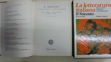 BARI, LATERZA, 1974. Il Seicento. La nuova scienza e la crisi del Barocco. a cura di F. Angellini. A. Asor Rosa, S. Nigro. In 8∞grande.: pp. X + 591. Con alc. ill. in b.n. ed a.c. f.t. Collana Grandi Opere. Leg. edit., cart. con tit. in oro al d. Qualche fioritura. Cofanetto edit., fig.