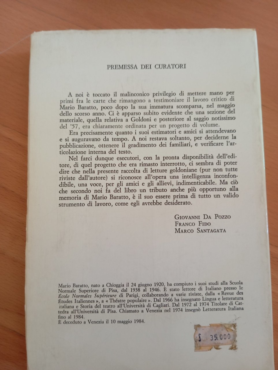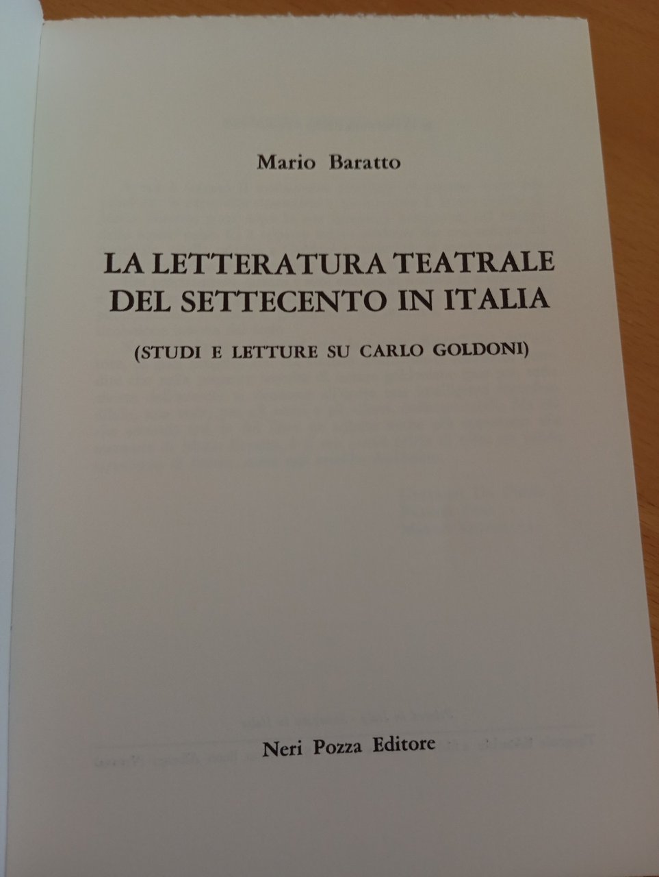 La letteratura teatrale del Settecento in Italia, Mario Baratto, Neri Pozza 1985
