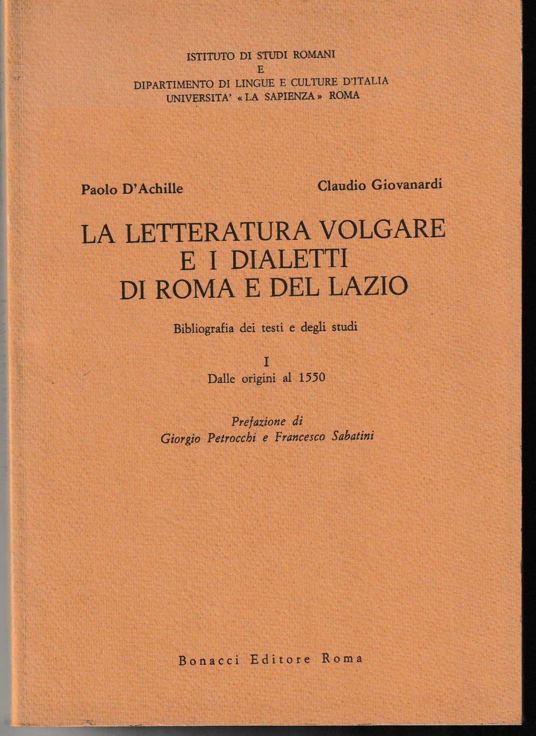 La letteratura volgare e i dialetti di Roma e del Lazio. Bibliografia dei testi e degli studi. I. Dalle origini al 1550. Prefazione di Giorgio Petrocchi e Francesco Sabatini