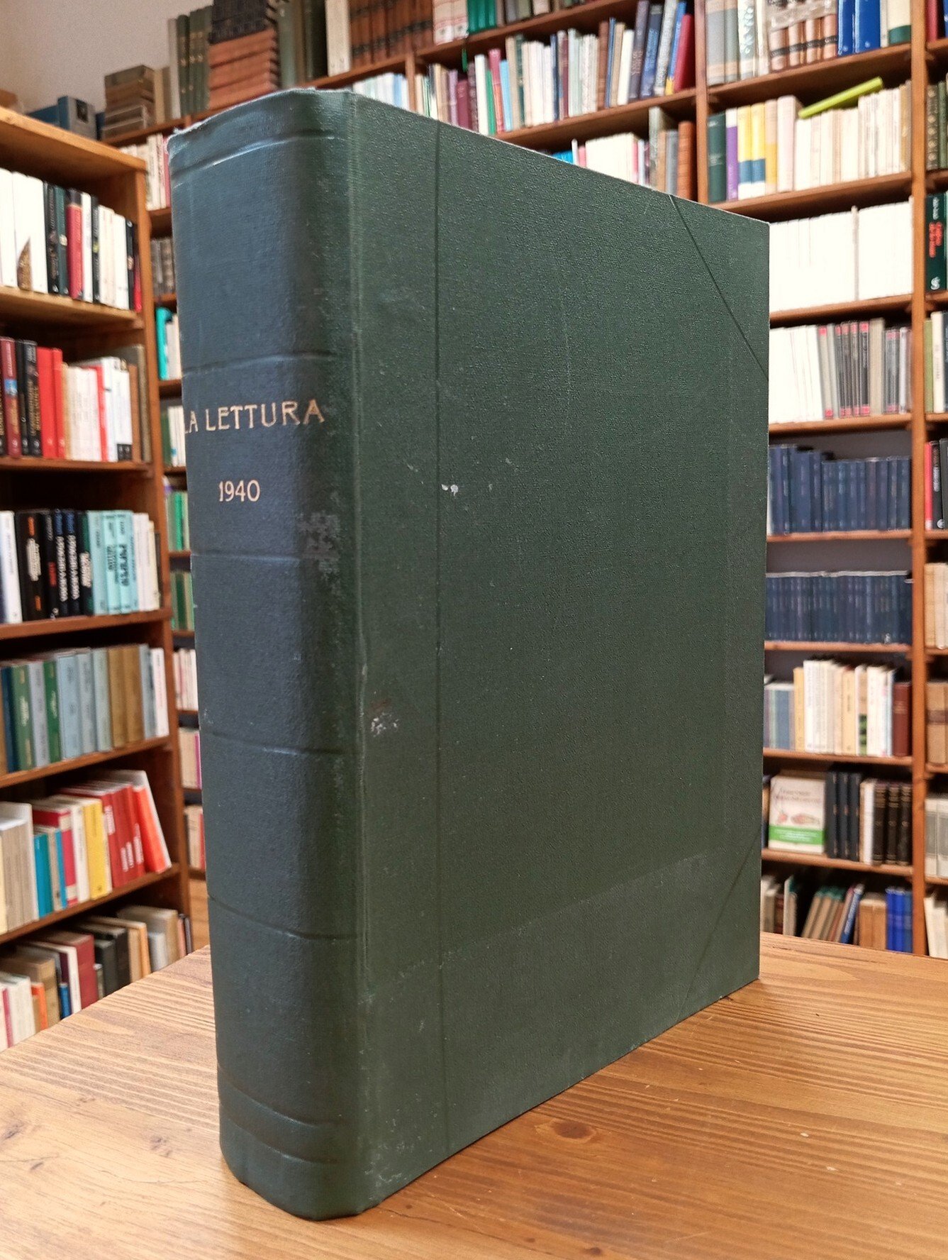 Volume rilegato in tela verde amatoriale con titolo in oro al dorso, 1012 pagine a numerazione continua corrispondenti ai 12 numeri mensili dell'annata 1940; ricco apparato iconografico in nero e a colori. Conservate le copertine originali a colori dei fascicoli. Tra i contenuti di rilievo si segnala: Guido Piovene, "La figlia dell'indovina" (racconto), "Arturo Martini pittore", "De Pisis pittore oggettivo", "La pittura di Giorgio De Chirico"; Dino Buzzati, "Vita di Magid Abud-El-Ashkar" (biografie), "Eppure battono alla porta" (novella); Ercole Patti, "Avventura notturna" (racconto); Ada Negri, "Santa Caterina da Siena" (biografie); caricature di Novello; Cesare Zavattini, "Il grande fiume" (soggetto cinematografico); Curzio Malaparte, "Dei ragazzi di Etiopia possiamo fidarci" (guerra); Sandor Marai, "Un ritorno inatteso" (romanzo); tavole e illustrazioni di Arturo Martini, Novello, De Pisis, Giorgio De Chirico, Plinio Codognato e altri. Raccolta molto ben conservata.