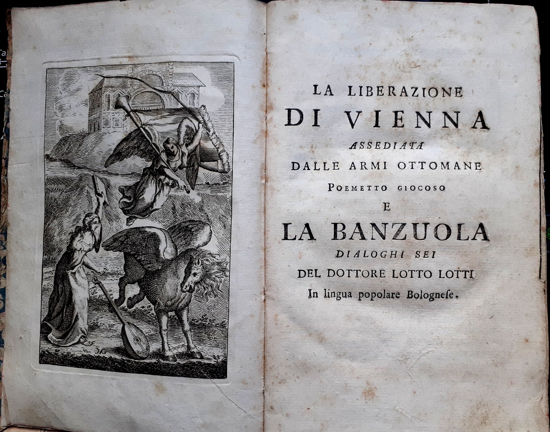 LA LIBERAZIONE DI VIENNA ASSEDIATA DALLE ARMI OTTOMANE. POEMA GIOCOSO E LA BANZOLA, DIALOGHI 6 DEL DOTTORE LOTTO LOTTI IN LINGUA POPOLARE BOLOGNESE.