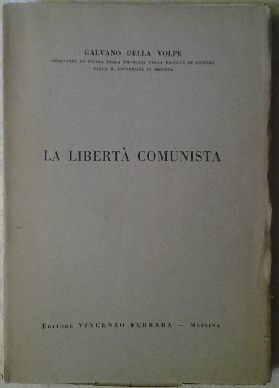 LA LIBERTA' COMUNISTA. - Saggio di una critica della ragion pura pratica.