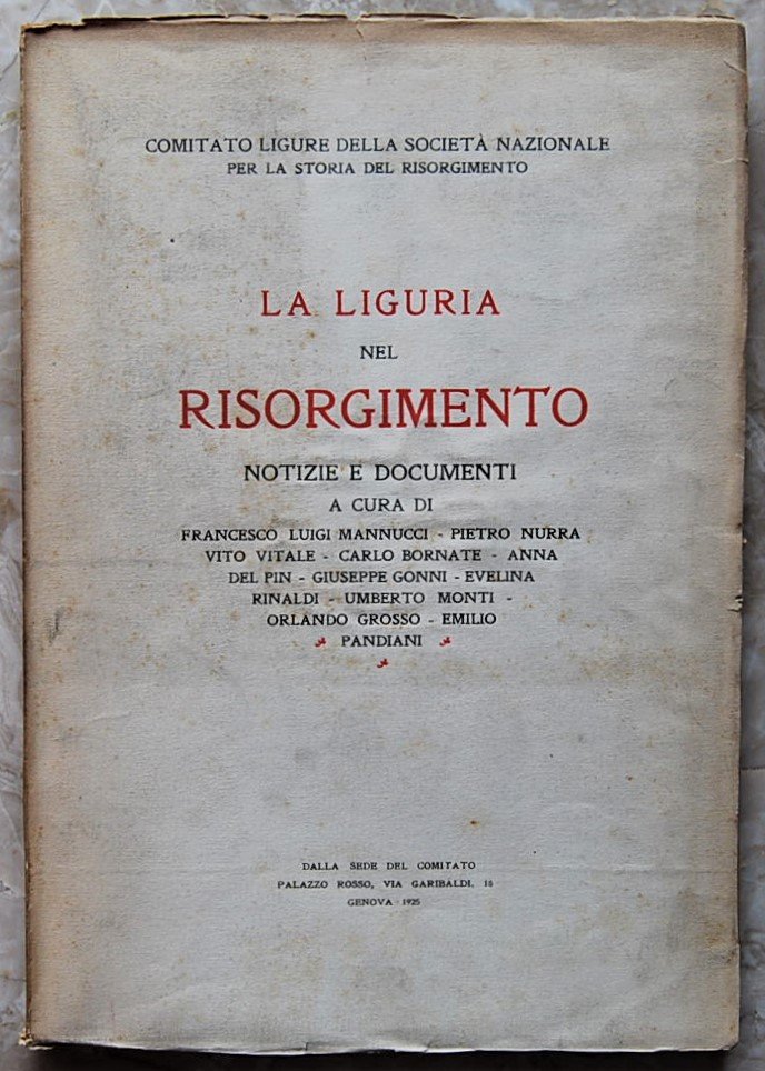 Comitato Ligure Societa' Nazionale, 1925. In-8, brossura, pp. 220. Intonso. Lievi macchie alla brossura esterna, peraltro in buono stato.