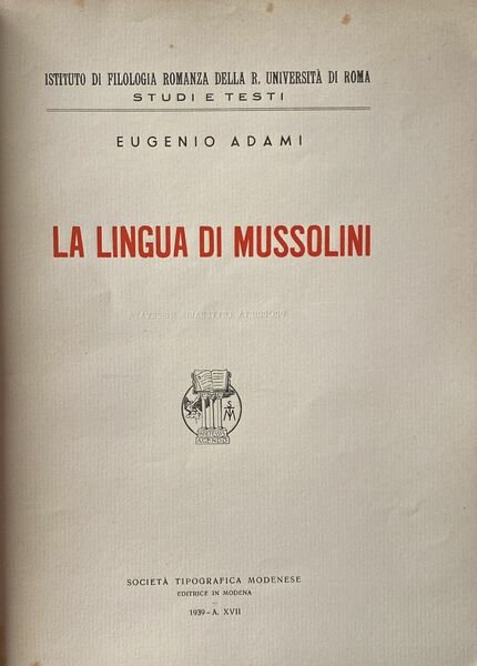 La lingua di Mussolini. Collana di filologia romanza nella regia università di Roma