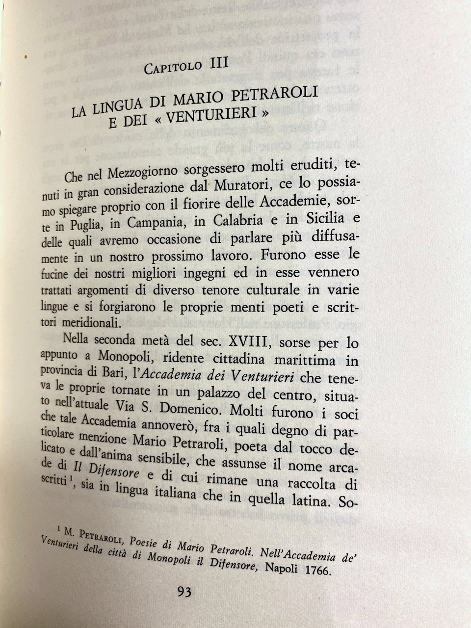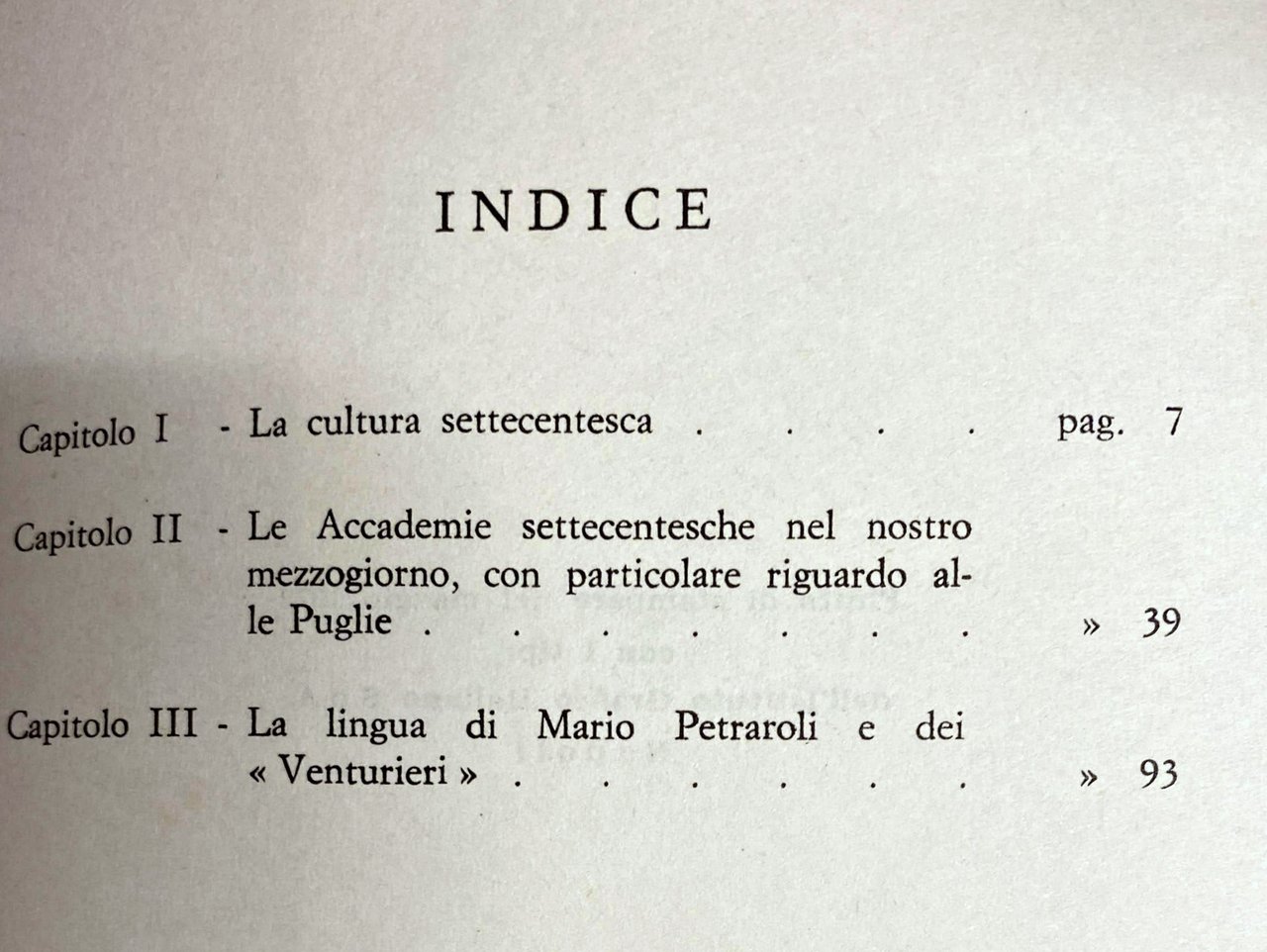 - Cultura settecentesca, Settecento, Italianistica, Lingua, Italiano, Critica lettraria, Accademie letterarie, Mario Petraroli, Venturieri, Puglia, Regno di Napoli, Sicilia, Intellettuali, Scrittori, Studi critici, Linguistica, Toscano, Michele Maylender, Illuminismo, Circoli culturali, Letteratura, Poesia, Filosofia, Scienze, Opere generali, Libri fuori catalogo, Storia locale, Saggi letterari, Calabria