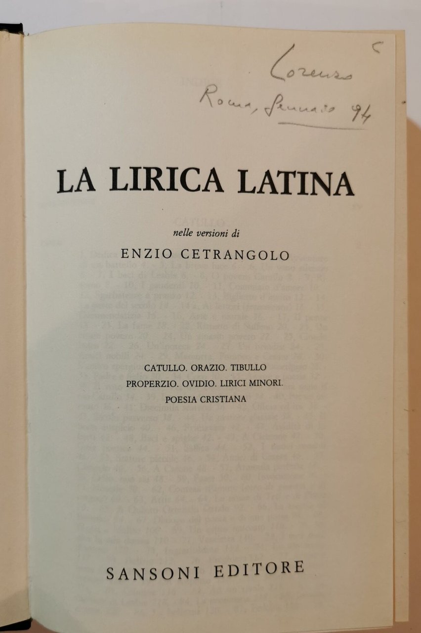 La lirica latina - Catullo, Orazio, Tibullo, Properzio, Ovidio, lirici minori, poesia cristiana