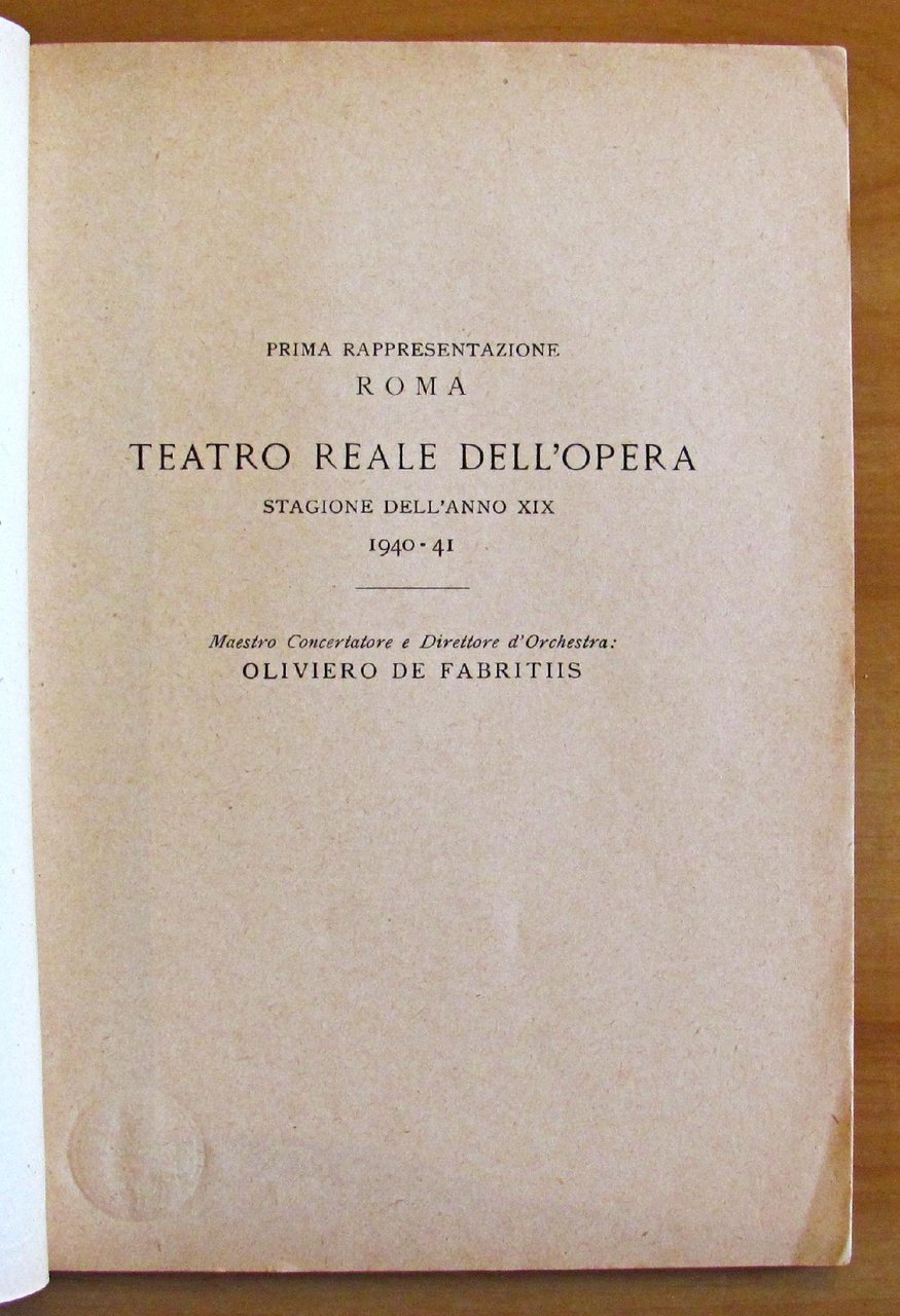 (dalla commedia omonima di Goldoni) Libretto scritto per la musica di Mario Persico. Testatine e finalini in b/n n.t. Ricordi - Milano, 1941. Brossura editoriale con parziale mancanza del dorso. Interno in ottimo stato. 13,5x20; pp.95. Raro in questa edizione. BUONISSIMO STATO , Molto buono (Very Good)