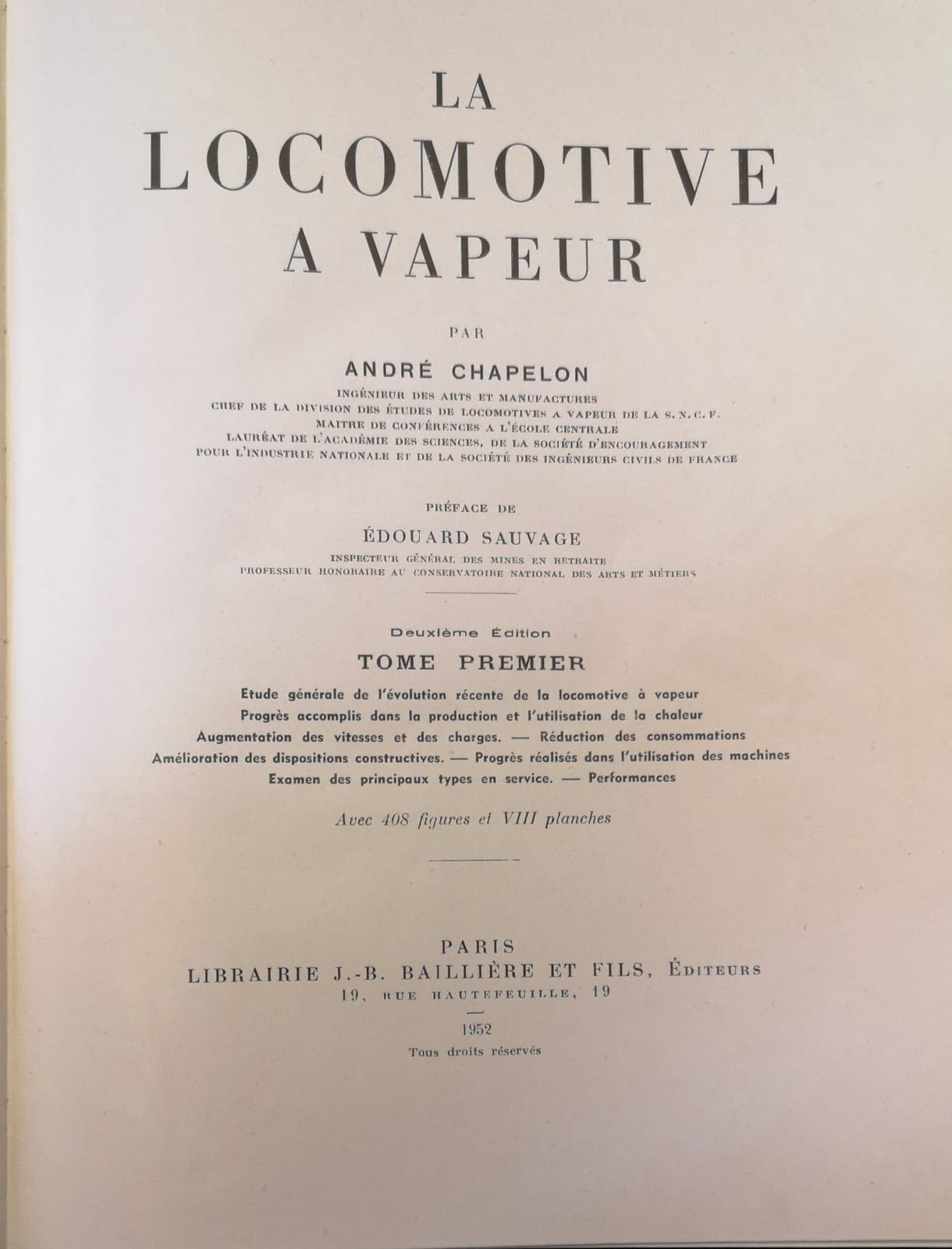 In-8 gr., mezza pelle moderna con ang., dorso a cordoni con titoli in bianco e oro, cofanetto in tela e cartonato, pp. XIV,648, con 408 illustrazioni nel testo e 8 tavole fuori testo, in bianco e nero. Tomo 1° e unico pubblicato, contenente: Etude générale de l'évolution récente de la locomotive à vapeur - Progrès accomplis dans la production et l'utilisation de la chaleur - Augmentation des vitesses et des charges - Réduction des consommations - Amélioration des dispositions constructives - Progrès réalisés dans l'utilisation des machines - Examen des principaux types en service - Performance. "Seconda edizione" di una delle migliori opere mai scritte sulla locomotiva a vapore. Grazie ad André Chapelon (1892-1978), ex studente dell'École Centrale des Arts et Manufactures, straordinario ingegnere, progettista e scienziato, la locomotiva a vapore raggiunse il suo massimo picco di potenza ed efficienza, proprio nel momento in cui veniva soppiantata da altre forme di forza motrice. Sebbene sia stato diffamato da alcuni colleghi e i suoi primi progetti siano stati deliberatamente accantonati a favore della trazione elettrica e diesel, ha comunque acquisito un'innegabile reputazione internazionale. Esemplare ben conservato.