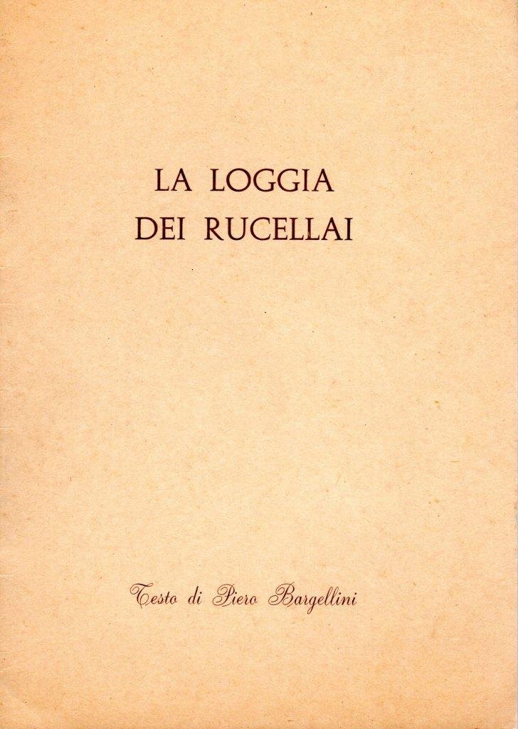 La loggia dei Rucellai, formato 12 x 17. <BR>Copertina morbida di colore beige con titoli in marrone al piatto anteriore. <BR>Ottime condizioni.