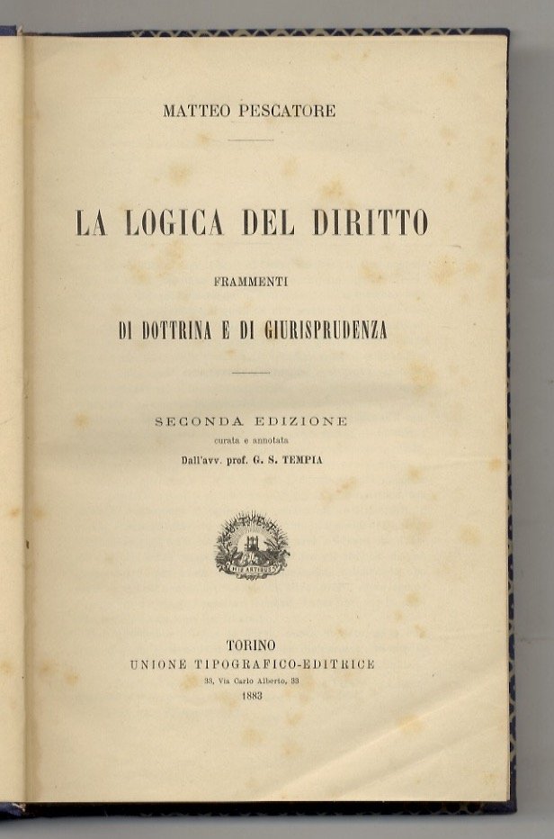 La logica del diritto. Frammenti di dottrina e di giurisprudenza. Seconda edizione curata dal prof. G.S. Tempia.