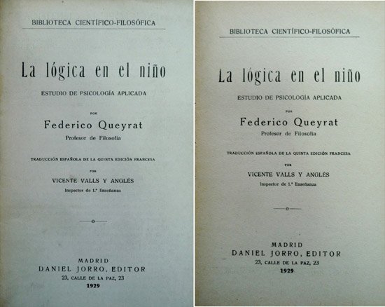 La lógica en el niño. Estudio de Psicología Aplicada. Traducción de Vicente Valls y Anglés.