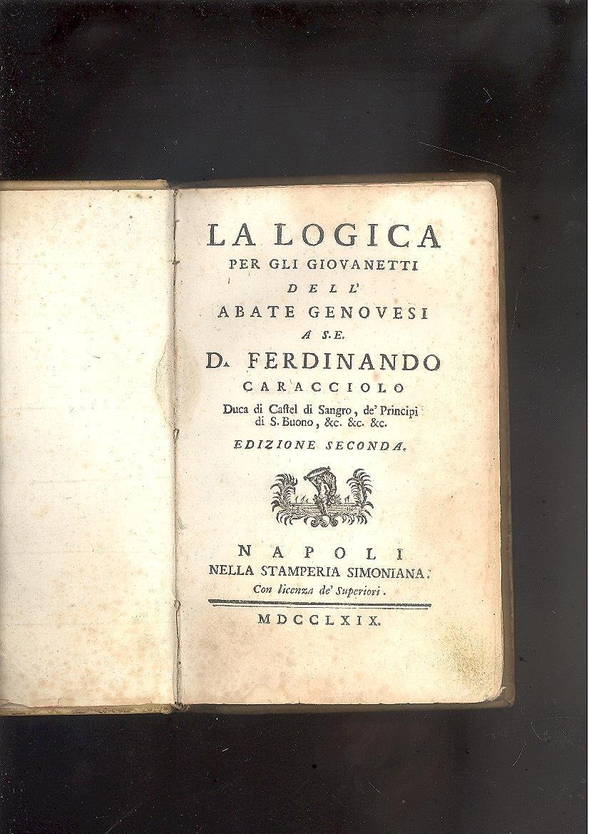 LA LOGICA PER GLI GIOVINETTI DELL'ABATE GENOVESI A S.E. D. FERDINANDO CARACCIOLO<BR>Duca di Castel di Sangro,dé Principi di S.Buono, &c,&c.&c.