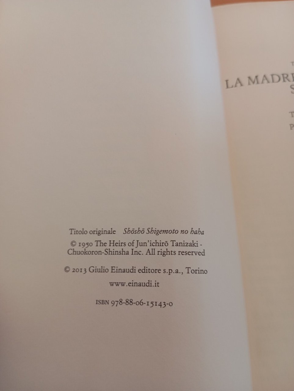 La madre del comandante Shigemoto, Tanizaki, Einaudi, 2013, sottolineato